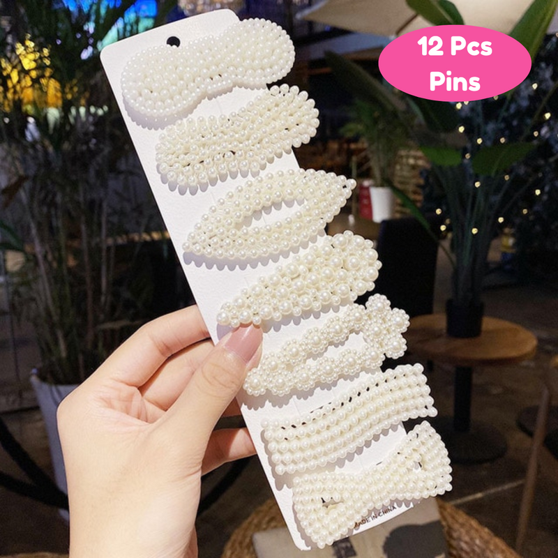 Pearl Metal Hair Clips Pins For Hair Styling/ Ties Hair for kids Girls, Elegant Handmade Fashion Hair Accessories (Ramdom Design, 12 Pieces)