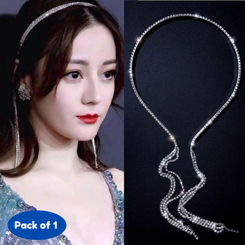 Rhinestone Tassel Hair Band Headband Headwear Silver Hair Accessories for Women and Girls (Pack of 1, Silver)