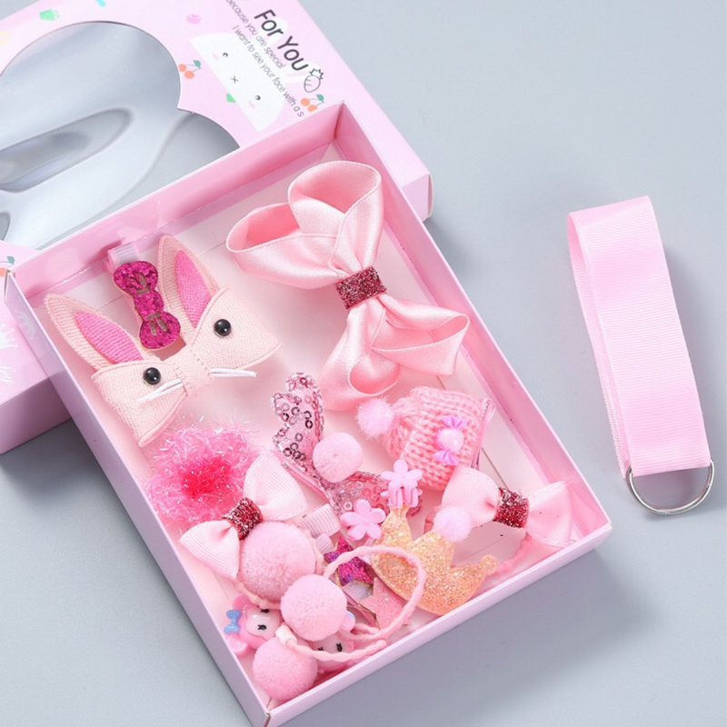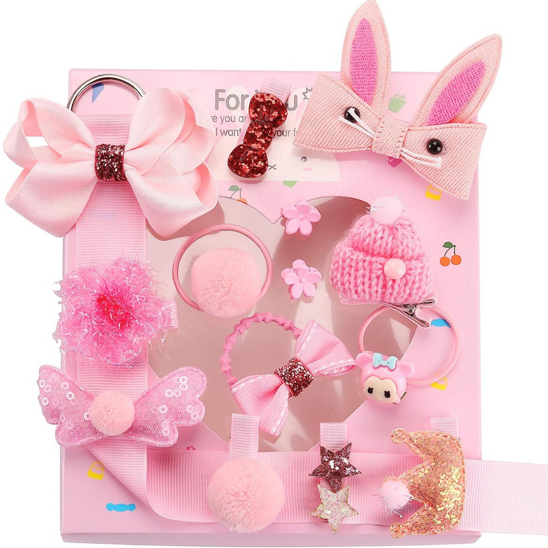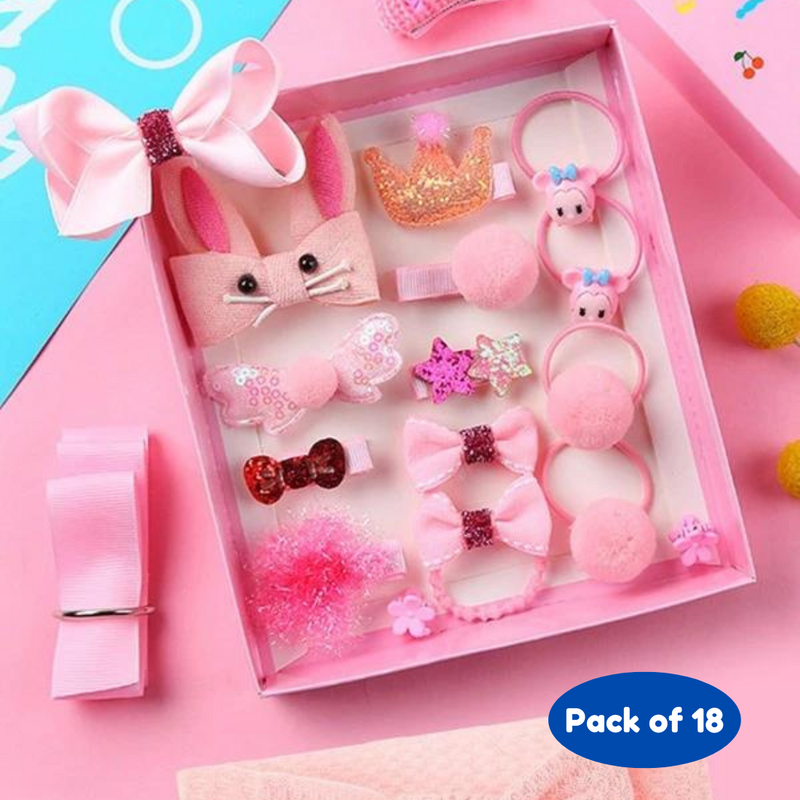 Clips Bows Elastic Ties Ponytail Pins Hair Accessories Pack of 18 - Pink