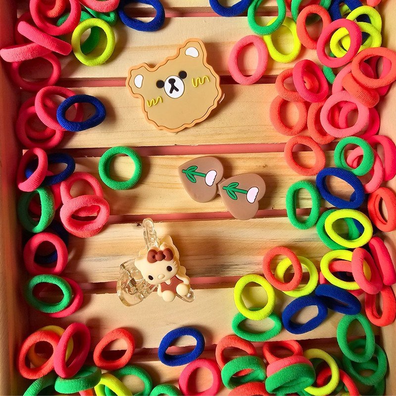 "Key Feature Best for Gifting & for personal Use, combine it with a matching dress & be in the limelight of every Occasion skin-friendly & plating is non-allergic & safe for all environments. Colorful attractive colors mini elastic hair ties for girls for different hairstyles Good quality and vibrant colors. Trendy hair clips Specification Brand - Bubble Trouble Type - Hair clips Age - 3 Years + Product Description ""This set includes 1 Pack Neon mini hair ties + 1 Pack Hair Clip Set The hair ties Pack contains 90 pcs of mini Ties . Trendy hair clips, freely match according to your favorite style. Ideal for toddlers, baby girls, little girls. Different styles different size, suitable for the different hairstyles Smooth And Soft Which Do No Harm To Doll Hair And Skin Trendy and fashionable with a great grip. Secure hold all day. Available on almost all occasions needed, suitable for parties, outings, photos, vacations and other occasions wear, make your babies is bright and beautiful in the crowd. It is a perfect gift for children. Item Included in The Package 1 Pack Neon mini hair ties ( 90 Pcs of Mini Hair Ties in a Pack) + 1 Pack Hair Clips Disclaimer: We have made a consistent effort to make the colors and finishes similar to the image of the products you see on the screen. However, the actual product and the images on the website can differ! The customer's discretion is advised. Note: The products in the image are for illustrational purposes. Please refer to ""items included in the package"" to understand what is inclusive of the price."