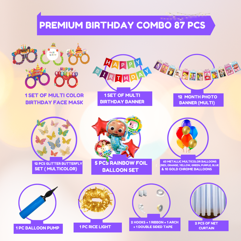 Premium Happy Birthday Cocomelon Foil balloon Set for first 1st birthday Theme boy girls kids ( pack of 87 , Multicolor)