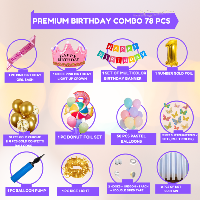 Premium Happy Birthday Donut Foil balloon Set for first 1st birthday Theme girl kids ( pack of 78 , Multicolor)
