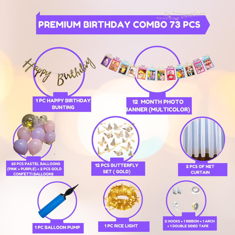 Premium Happy Birthday Pastel balloon Set for first 1st birthday Theme girls kids ( pack of 76, Multicolor)