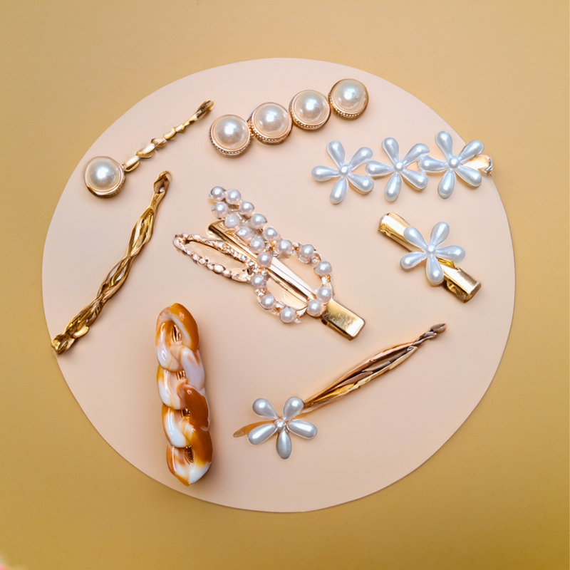 Stylish Pearl Barrettes Hair Pin Accessories Combo Set (Pack of 1, Golden Theme)
