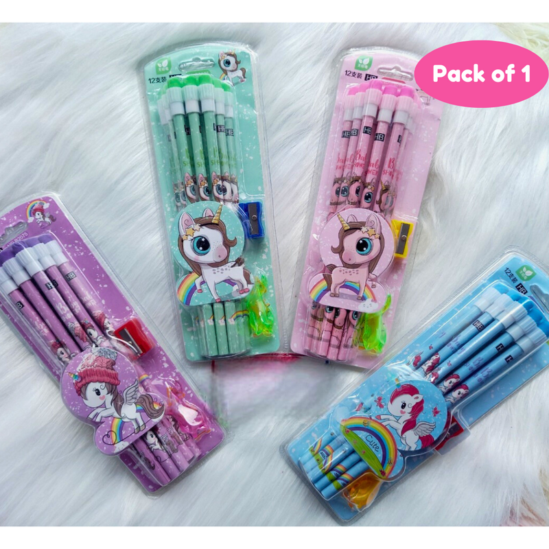 Unicorn Pencil Set 12 pcs in one pack (Packof 1 , Multicolor)